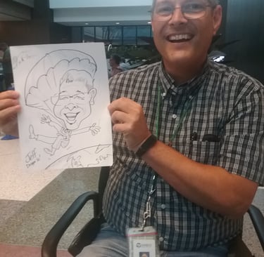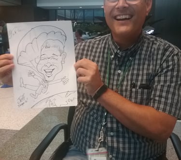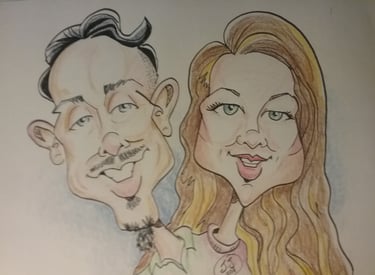Fun, flattering cartoon portraits for any occasion, drawn live or from photos.